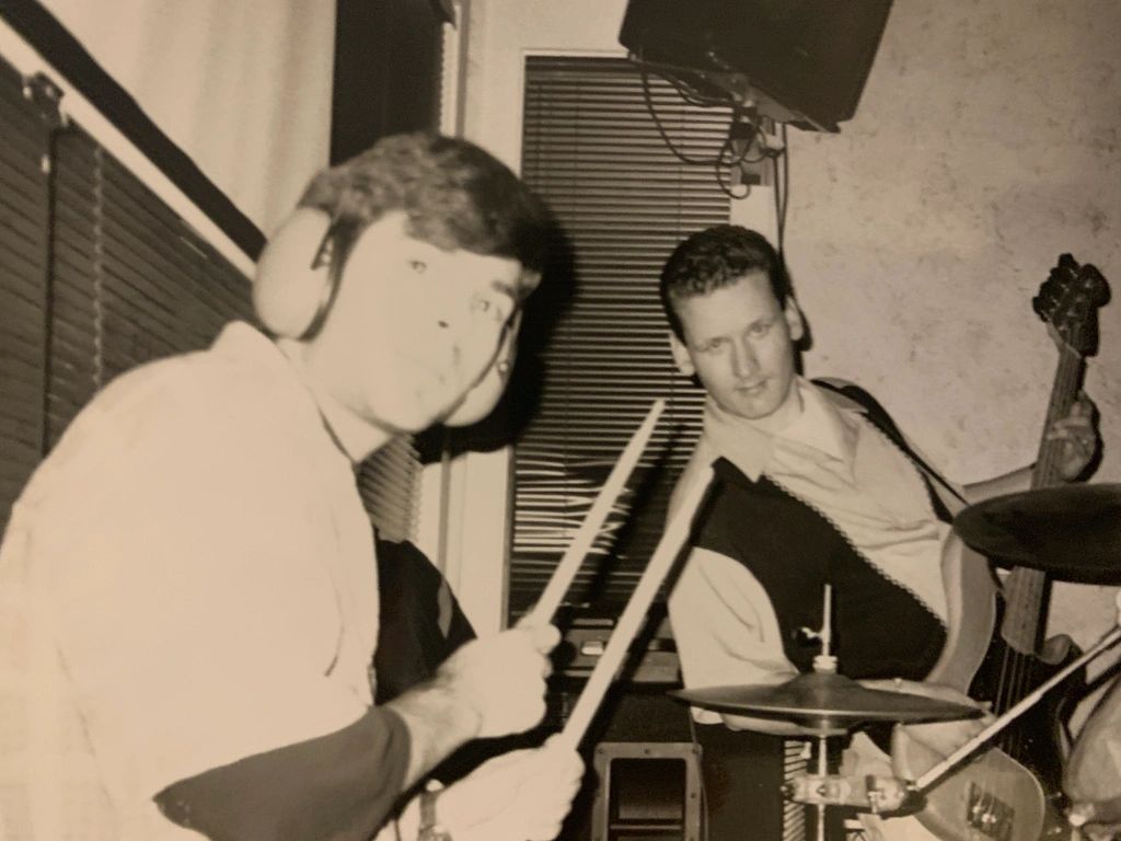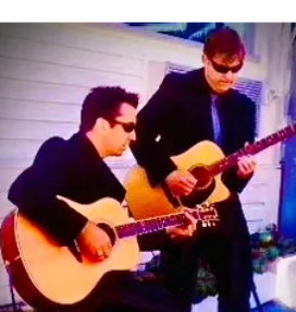 Jay & Dave warming up before a wedding ceremony performance, circa 2015.