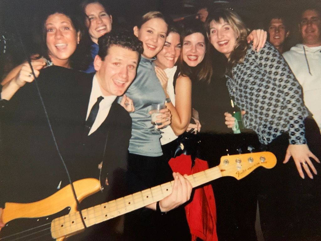 Jimmy Wrenn with eight of our closest friends (that night)... nine, if you count that one guy's head. Abernathy's circa 1997.