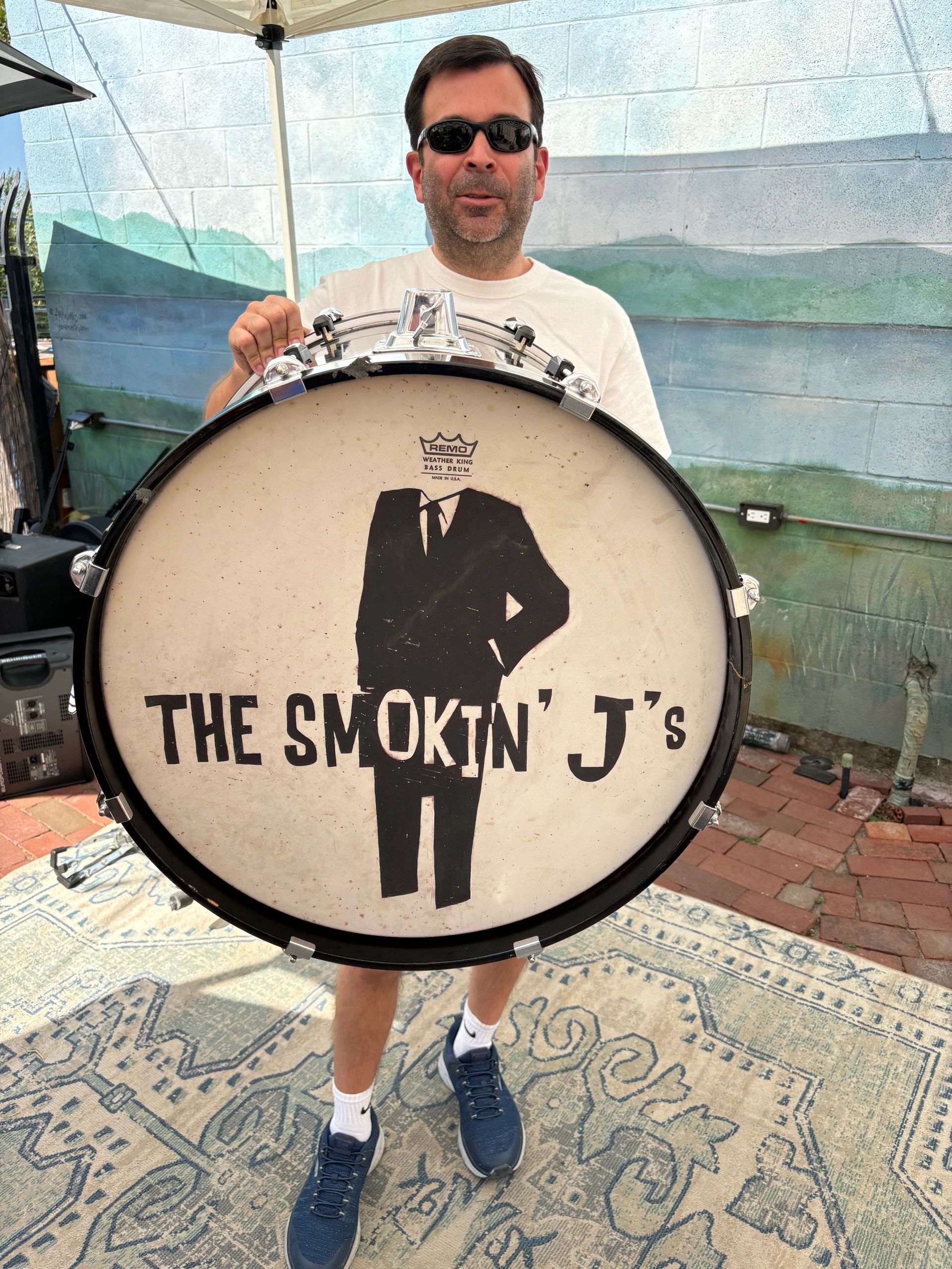 The classic Js logo drumhead, created by our dear friend Adam Swinson in the '90s. R.I.P., Ad.