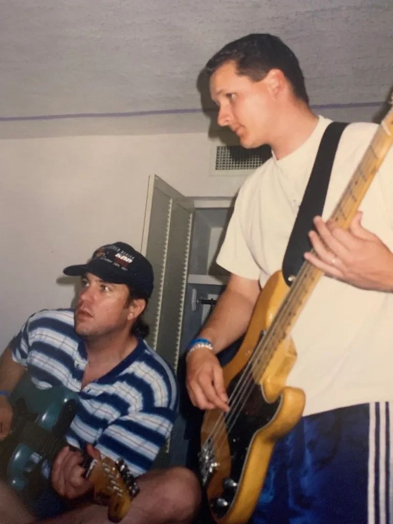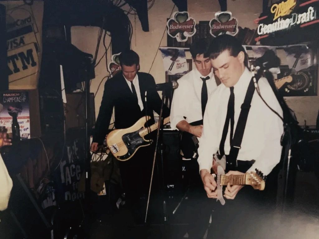Joe's right arm, Jimm, Jay, and Kevin in the front of Abernathy's, circa 1996.